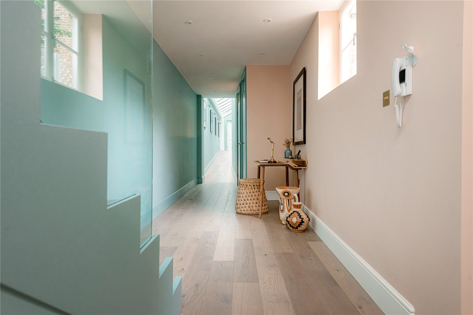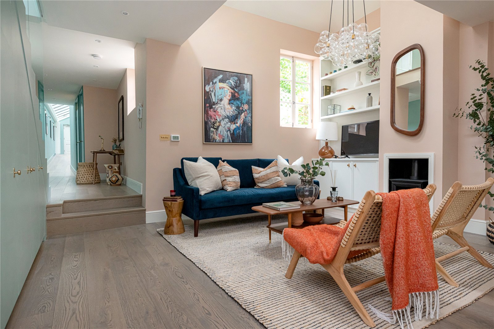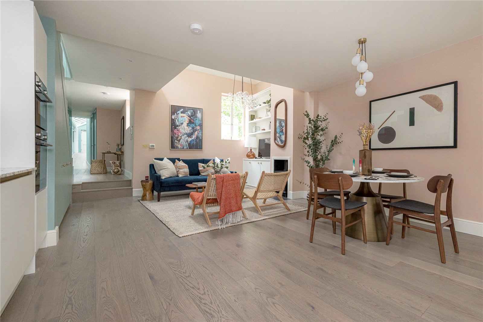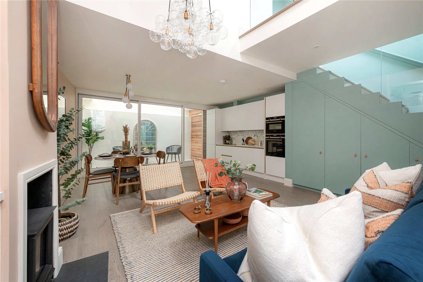 A newly renovated, freehold, house measuring approximately 1,290 sq. ft with two ensuite bedrooms, a private patio and located on Allen Street in the heart of Kensington. This house has been carefully renovated and designed to maximise light and volume throughout. Upon entering the property, you are welcomed by an unusually light entrance hall which offers storage and a guest cloakroom, before opening onto the large open-plan reception room which boasts double-height ceilings, separate dining and seating areas, an open-plan kitchen and a working fireplace. The private patio also leads directly off the reception room. Upstairs, the principal bedroom is bathed in light, further benefitting from an ensuite bathroom and good storage. The second bedroom is also ensuite and benefits from a large window which overlooks beautiful gardens. Allen Street and the surrounding streets really do have a village-like atmosphere, with sought after restaurants and cafes adding to the village feel. Kensington High Street is at one end of Allen Street, with its many shops and underground station.